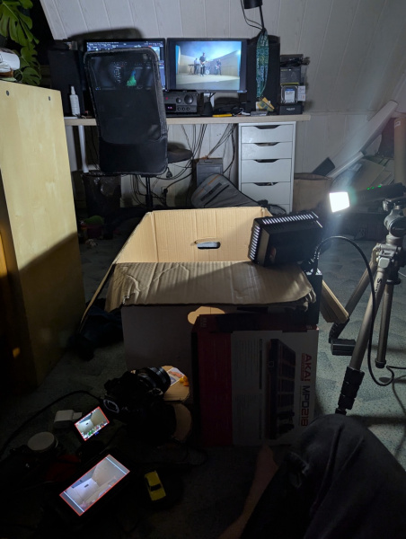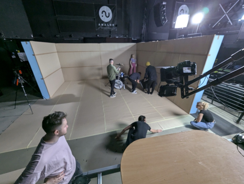 Once I started connecting the core ideas that we needed to film the band in an enlarged box interior set, and then make Ken dolls based on them that our recurring actress/dancer would interact with while looking into a real box, I believed that we could actually make it happen, because the theory and the necessary knowledge are there to do this from our available equipment and other resources in our environment with some additional rentals if needed. I have been directing and cinematographing music videos for 15 years and have produced many music video projects of various sizes and deadlines, but I have always strived to manage with the necessary minimum in terms of the number of crew members and accumulated technical resources. My philosophy is to invest heavily in planning: if you spend twice as long thinking things through, you can often achieve twice the quality with half the resources. Initially, I didn't even hesitate to build the set myself and shoot it without any camera or lighting assistance. Luckily, I realized that this would have led to a collapse, so I asked my old bandmate (Gábor Bártfai), who is also a talented architect, to help me design the set in the most cost-effective way possible and to assist with the actual construction on the set. Of course, the setup itself took half a day. Then, since I was working with two cameras, so that we could cover the set with shot count in time and since the set itself was relatively large, I brought in an old student and friend of mine (Miki Bacskai) to help with lighting and camera assistance.
